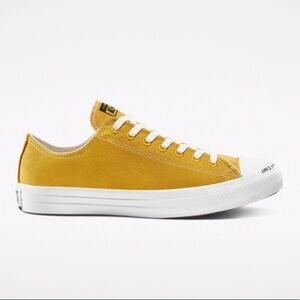Unisex Chuck Taylor All Star Renew Canvas, NIB. Gold Dart/Black/White. Original canvas feel, but w an upper crafted w 100% recycled polyester made from used plastic bottles. We’ve turned discarded materials into the world’s most iconic & loved sneaker. Touch it, feel it, wear it-we bet you won’t know the difference.