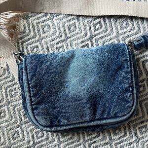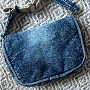 Stylish denim crossbody bag perfect for casual outings. Features a comfortable strap for easy carrying.