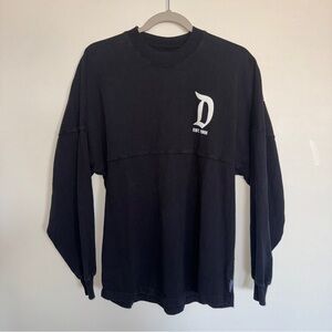 Pullover Disneyland black Spirit Jersey. Official Parks merch, plain black long sleeve design with white puff paint. NWOT in excellent condition. This color is no longer for sale.