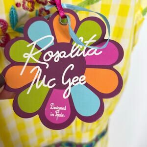 Rosalita McGee Womens Dress L Yellow Gingham Floral Embroidered Cotton Colorful