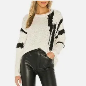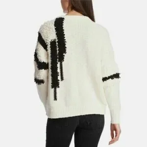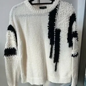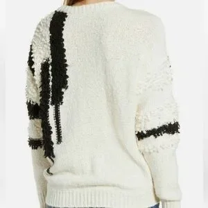 Cream/Black Size Medium Chunky loose knit sweater with loop stitch accents 55% Cotton, 34% Acrylic, 10% Nylon, 1% Spandex