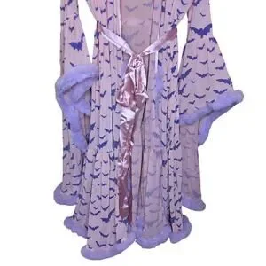 Western Evil NEW pastel goth Dracula boudoir feathered robe widow robe bat print