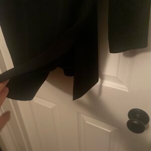 Sophisticated signature St. John fabric in black. Gold button accents make this tunic-length side split number a winner! 32" long, pair with pants, leggings - or tights - if you got the legs! Disclosure: small hole in front near hem as indicated on last pic - low price reflects.