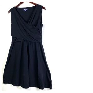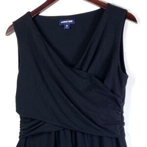 Lands End Sz Medium 8 10 Dress Black Ruched Stretch Slvlss