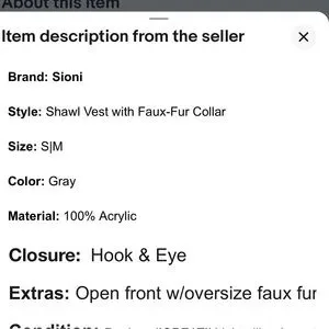 Sioni•size S/M•Shawl Vest•Faux-Fur Collar Size