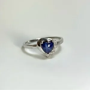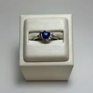 Such a unique ring, featuring a center blue sapphire with a double star effect! Also known as a Lindy star!