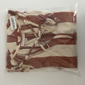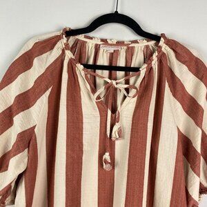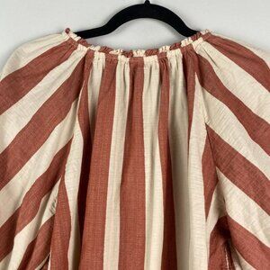 Knox Rose Top Womens L Striped Puff Sleeve Tie Neck Cream Red Cotton Boho