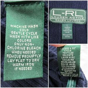 RALPH LAUREN Vintage Navy Blue V-Neck Cable Knit Tennis Sweater Women Size Large