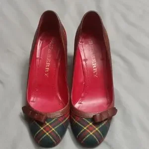 Burberry Women's Plaid Pumps - Brown and Red 35.5 or size 5.5 With Box