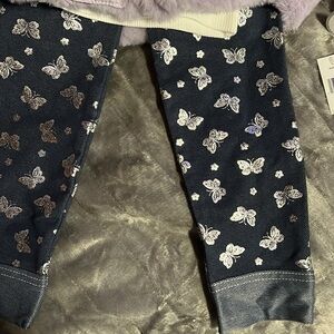 Purple butterfly 3 piece set for every day or dressy casual…comes with puffy sleeveless vest with silver butterflies with snap up hidden zipper …super cute sparkly butterfly shirt underneath paired with it and lovely butterfly cuffed jeggings to complete ensemble…all NWT