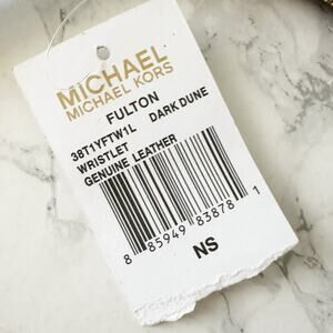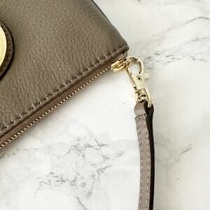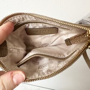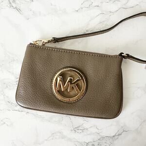 Michael Kors Fulton Dark Dune Top Zip Leather Wristlet Goldtone Hardware