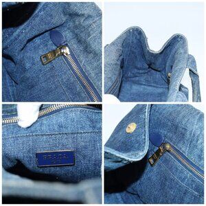 PRADA Canapa MM Hand Bag Denim Blue Auth