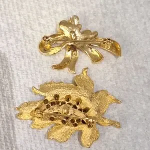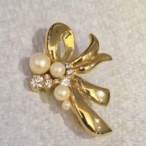 Beautiful vintage Bundle of 2 Gold Tone and faux Pearl Brooches.