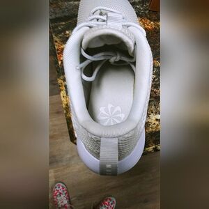 These unisex Nike Roshe 2 golf shoes were just released this year. They are light weight, and water resistant. They are spikeless so you can wear them just about anywhere, and they will not tear up the green. They are considered unisex bc the style is suitable for a male or female. They are size 6 in mens, and 7.5 in womens. The official color is called 'Photon Dust.' Its like a white/gray. i would compare it to platinum without the metallic effect.