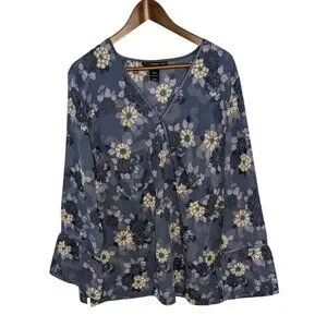 Venezia Women's Floral Blue Bell Sleeve Blouse Top 18/20 XL plus size Blue V-nec