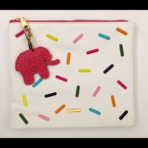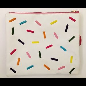 Sprinkle Clutch - white zip with embroidered rainbow-colored sprinkles