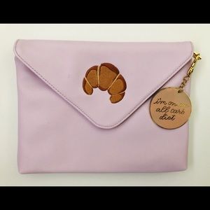 Croissant Clutch - lavender with embroidered croissant, envelope design