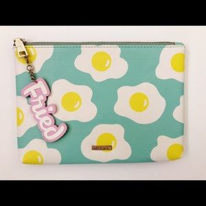Fried Egg Clutch - teal zip with printed fried egg pattern