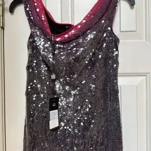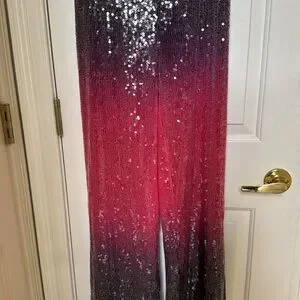 This is sooo fun! Elegant pink purple ombré with clear glazed sequin overlay. Such a statement outfit!! Recommend with platforms. Fits size 4-6. Never worn