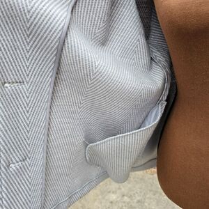 Beautiful coat for women. Great for spring or fall. Size Large. Clean inside and outside. Very comfortable. 44% Polyester, 31% Acrylic, 25% wool. See pictures for details