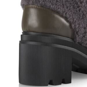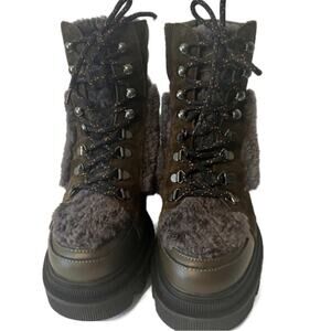 Voile Blanche Loden Faux Shearling Trim Lug Sole Leather Boots Khaki size 38