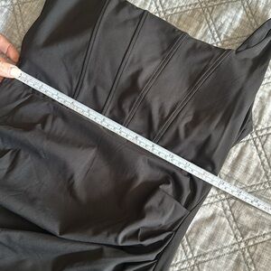 Halara Square Neck Backless Corset Ruched Split Bodycon Midi Casual Dress