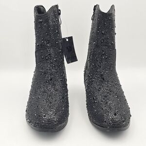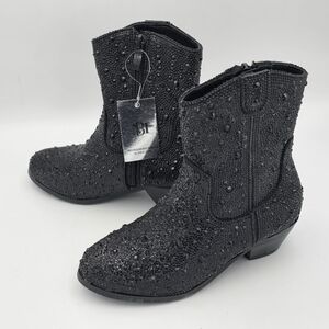 NWT Badgley Mischka Girls’ Sparkly Cowgirl Boots, Black Rhinestones