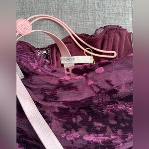 NWT House of CB ISADORA Black Cherry Devore Corset Dress & Gloves, Size Small