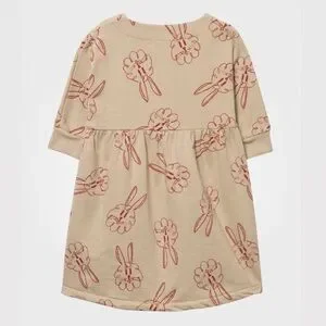 Sweat dress by Bobo Choses. In sand with red all over BUNNIE print. Featuring a round neck, short placket with push button closure and a pleaded skirtseam.