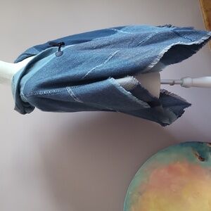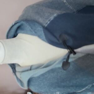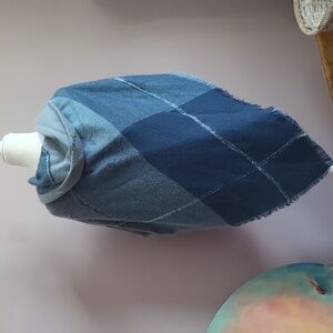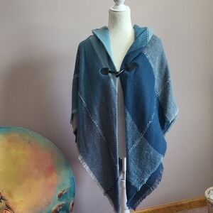 Altare Super Cozy Stylish hooded Cape with toggle closure. Features a blend of blue shades. Perfect for layering.