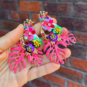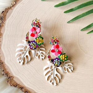 Zara Monstera Leaf Tropical Statement Drop Earrings