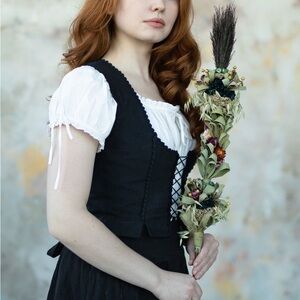 NWT Voriagh Alma Linen Folk Corset Bustier Black S