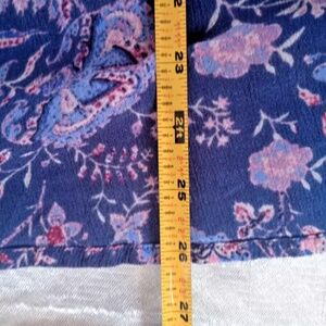 Nine West Womens Blue Floral Blouse Button Down Long Sleeve V-Neck Size small
