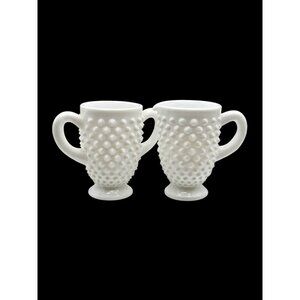 This pair of mid-century milk glass creamer and sugar bowl is adorned with an iconic hobnail design, capturing the essence of vintage elegance. The creamy white glass offers a timeless aesthetic, enhancing any collection or table setting with classic charm.