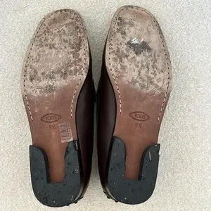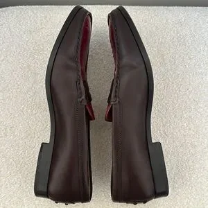 Women’s Tod’s loafers in burgundy and brown, sz. 9.5. They have been worn and well loved. You will notice wear on outer and inner soles and peeling of the leather on front. Still in great condition. Kept in a clean, dry, non-smoking environment. Please message me with any questions and thank you