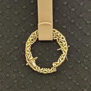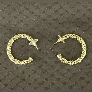 These elegant gold hoop earrings feature intricate detailing, perfect for adding a touch of sophistication to any outfit.