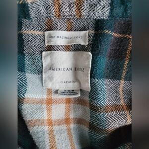 American Eagle Green Plaid Flannel Classic Fit Heavyweight Shirt Mens Size Medium