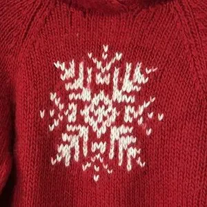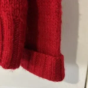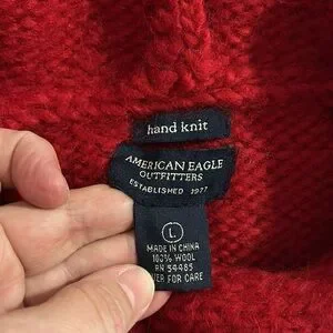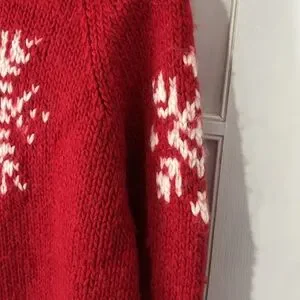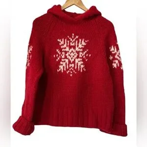 American Eagle Chunky Hand Knit Wool Snowflake Ski Winter Red Hooded Sweater - L