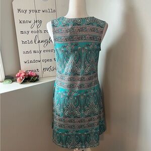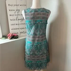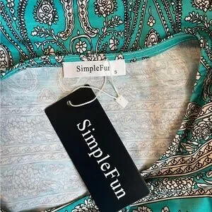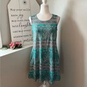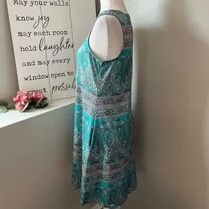 SimpleFun NWT boho summer beach floral aqua, white and black sleeveless dress with pockets. Size small. Measurements taken when dress is lying flat and are approximate.