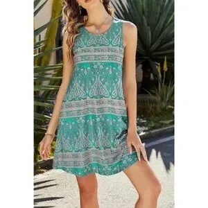 SimpleFun Summer Beach Floral Boho Tank Dress with Pockets