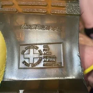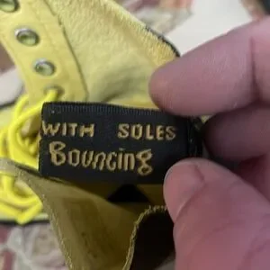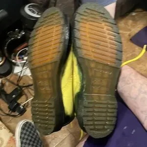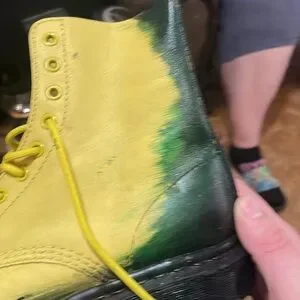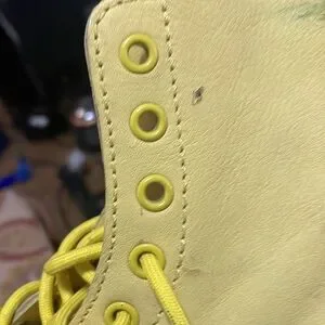Size is US ladies 8 custom painted yellow and black with some green in between yellow laces, bouncing soles, custom painted 1460 pascal boots