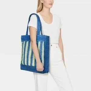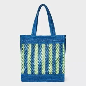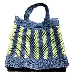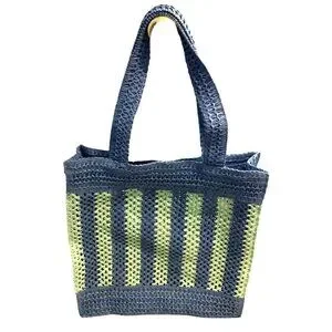 Universal Thread Crochet Woven Handbag Blue Green Tote Single Compartment