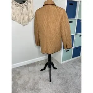 Chico's Quilted Midlength Jacket Neutral Tan Faux Leather Trim Size 3/US 16/18
