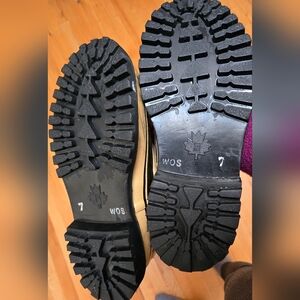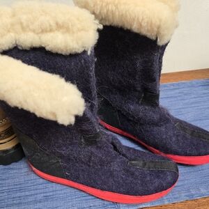 SOREL Women's "Caribou" Boots; Classic Sorel Style; Navy Wool Liners with Shearling Trim; Very lightly worn, soles, leather, rubber all in very good condition, only a few scuffs; Size 7, as indicated in pics; VERY WARM & Rugged; Perfect for cold weather, these boots offer comfort and durability.