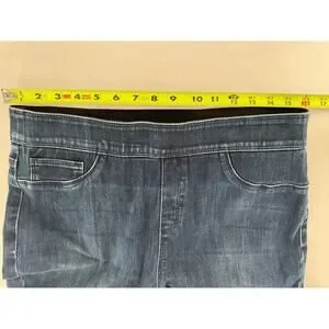 Soft Surroundings Size PM Denim Pull On Relaxed Straight Jeans Dark Slimming