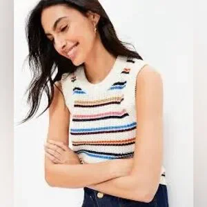 Loft women’s striped stitchy sweater vest size medium NWT