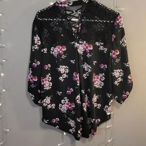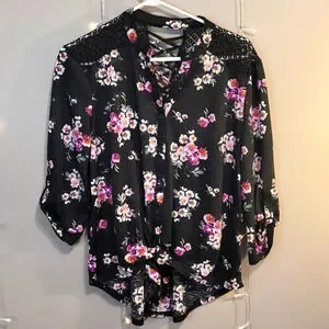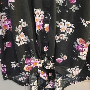 H14-NO BOUNDARIES: WOMEN SIZE XL FLOWERED QUARTER SLEEVE FLOWERED TOP