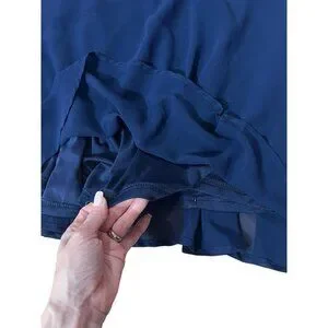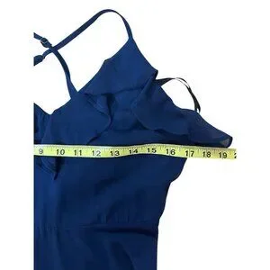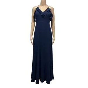 Lulus Metropolitan Navy Blue Ruffled Maxi Dress Large V Neck Sleeveless
