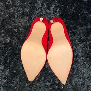 Step into elegance with Liliana's red stiletto heels, featuring a striking pointed toe and a luxurious suede-like finish. These high heels are designed to make a bold statement, perfect for adding a touch of sophistication to any outfit.
