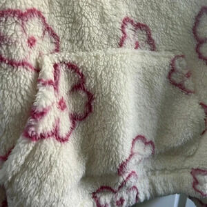 NWOT unworn size M women’s super soft fleece top. Half zip. Collar. Kangaroo pocket. Pink flowers. Perfect for every day, stay home days, weekends, cuddling.